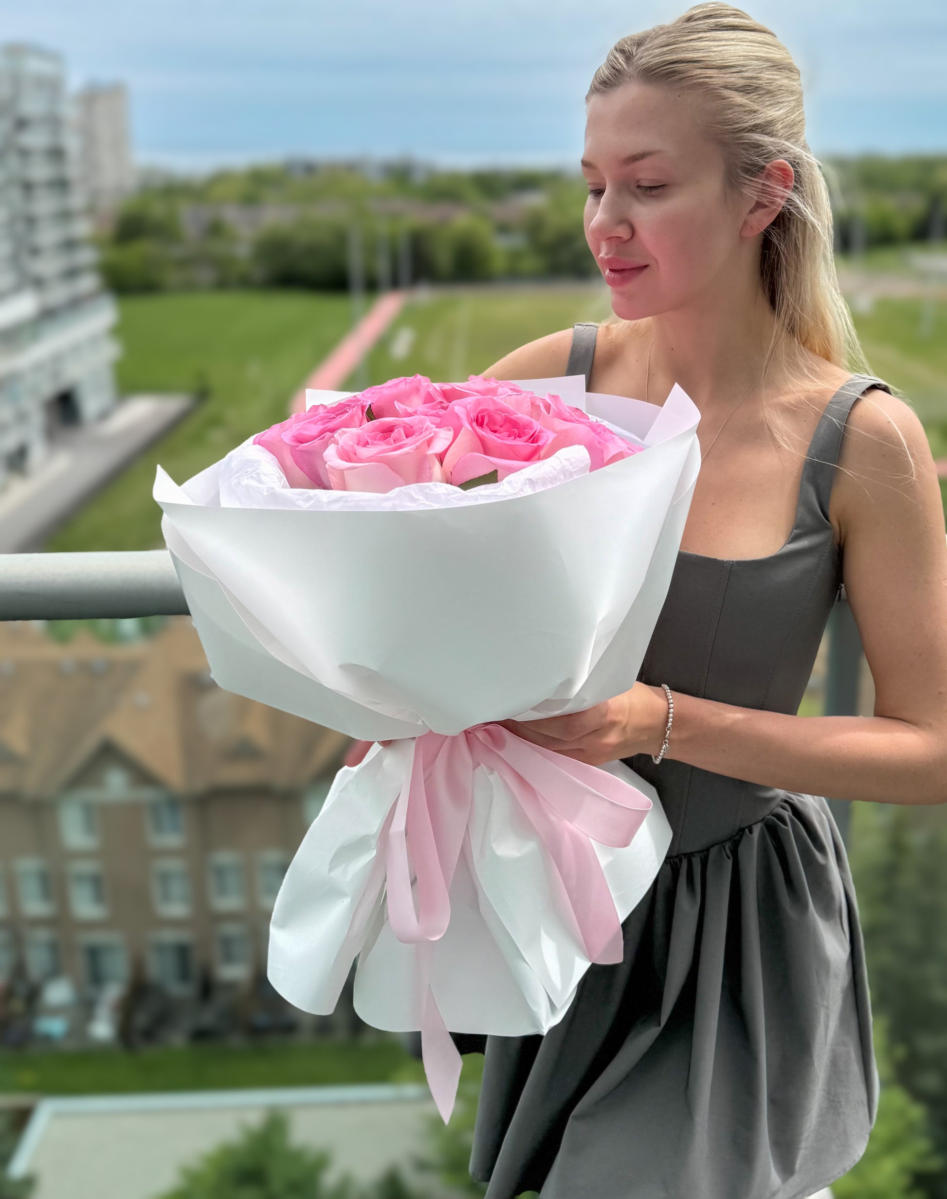 Our premium pink roses symbolize admiration, gratitude, and affection, making them the perfect choice for expressing your feelings. Carefully selected for their quality and freshness, these roses are artistically arranged in a stylish wrapping with a delicate pink ribbon, creating a luxurious and romantic presentation.