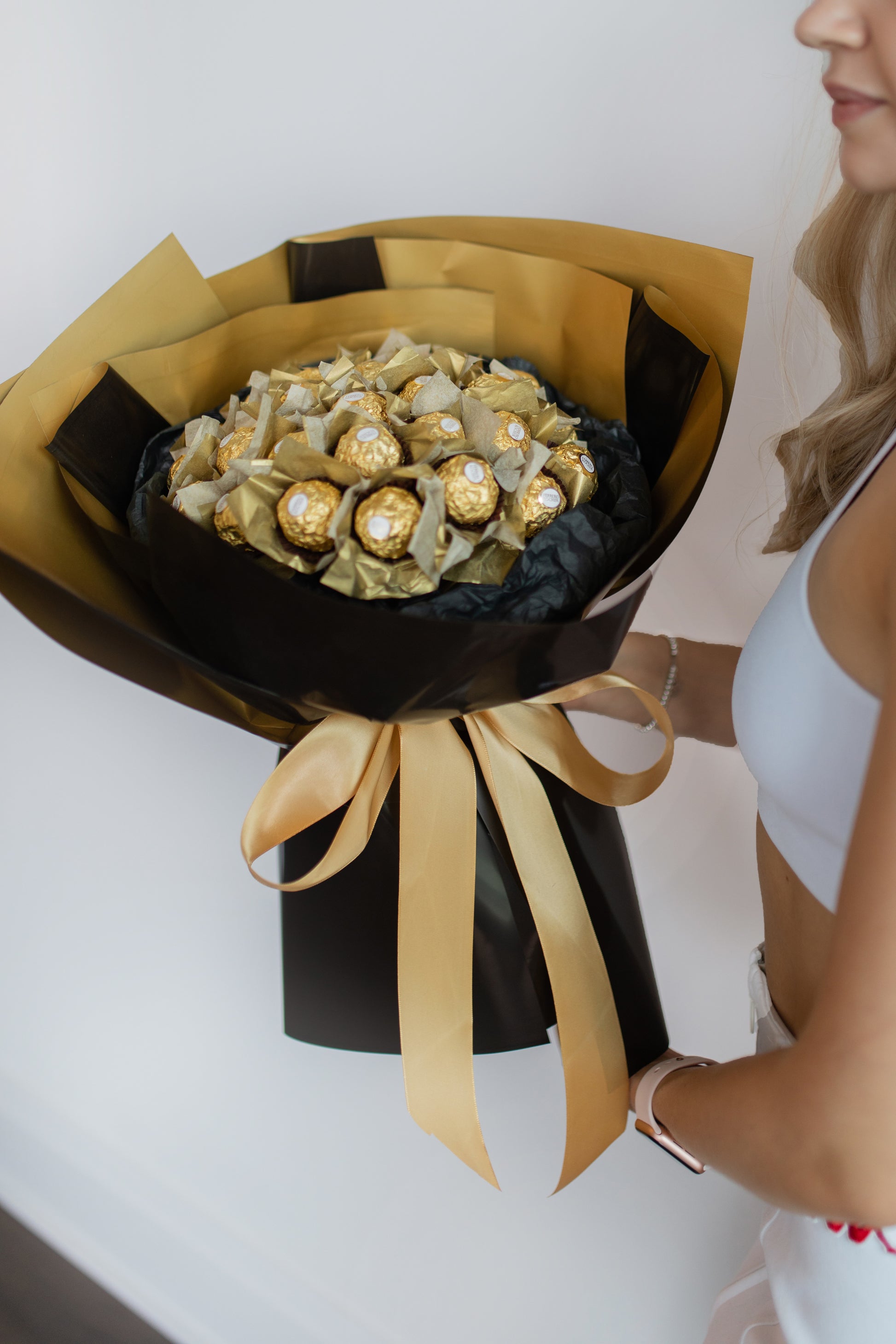 Ferrero Rocher chocolate bouquet is a luxury creative gift that will surprise anyone. It's more than just flowers, it's the bouquet that you can actually eat.