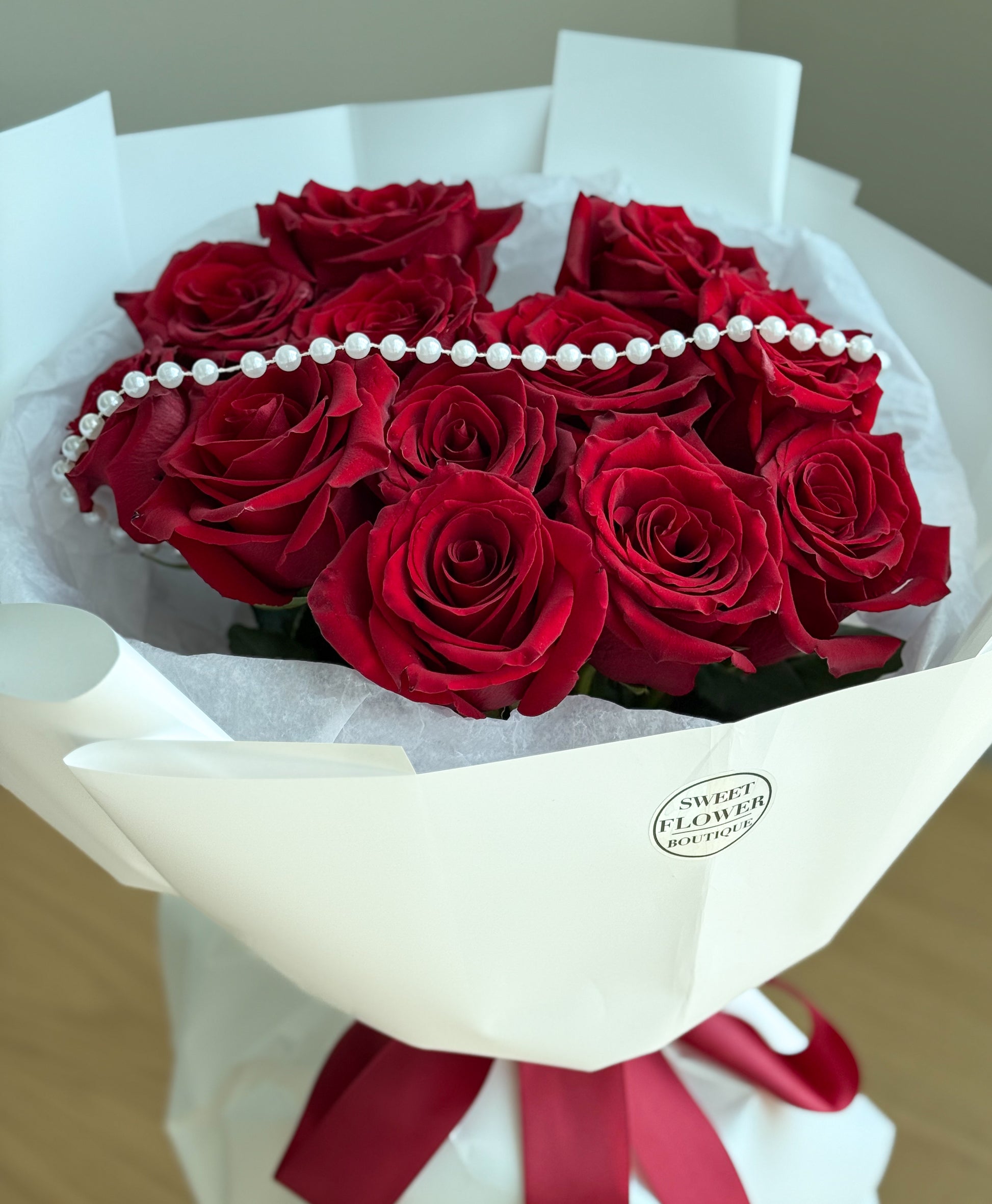 This Valentine's Day will be the best with our flower bouquets. Our roses are only premium quality and imported from Ecuador and Columbia. Unique perl design will elevate the look of our premium quality red roses, it gives such a nice touch to the bouquet.